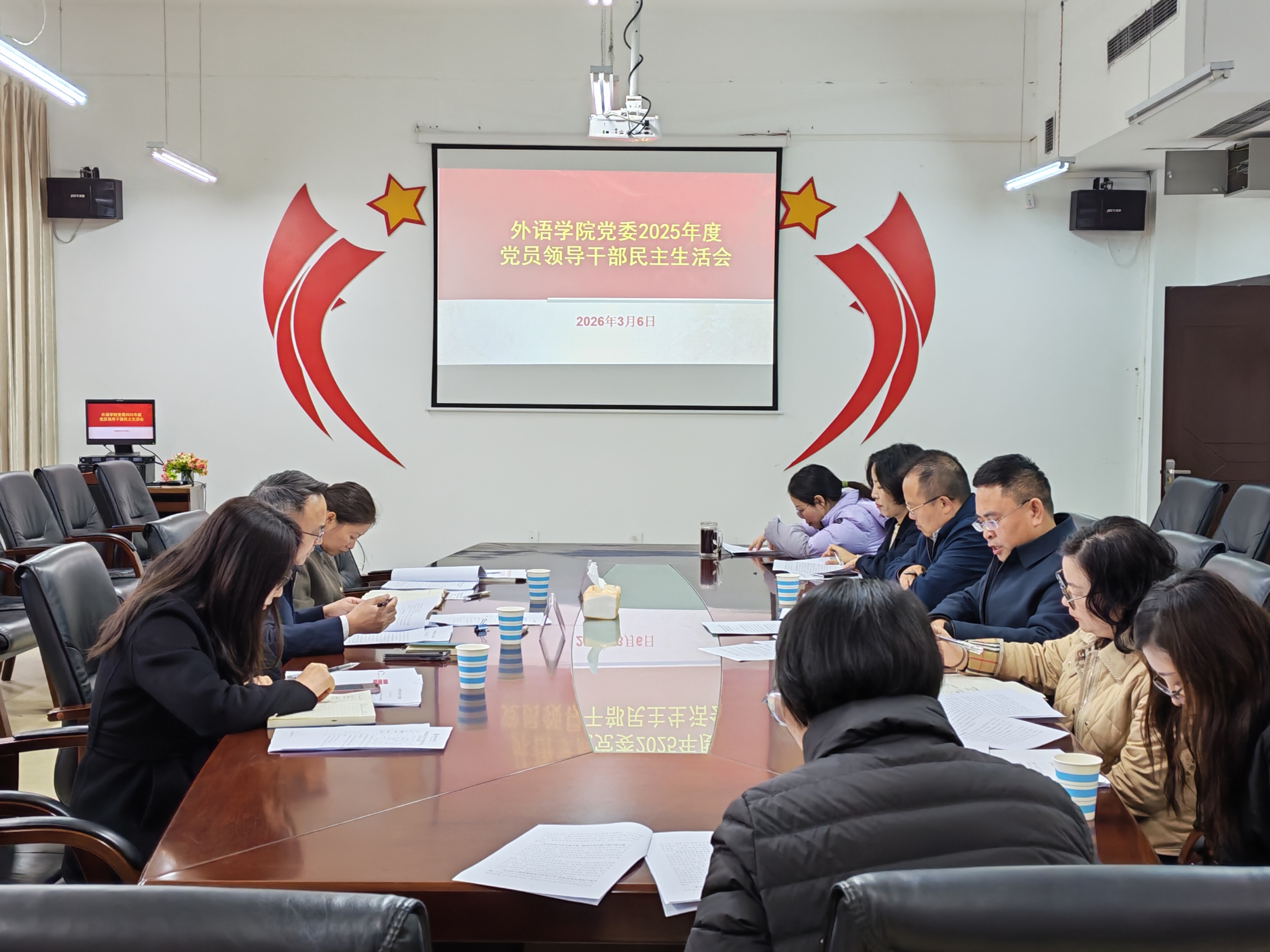 党委2025年度党员领导干部民主生活会在励学楼301会议室召开。副校长、党委常委李烨列席指导,校党委第七督导组王静、季晏莎到会督导。会议由学院党委书记黄贵平主持,学院全体处级党员领导干部参加会议。