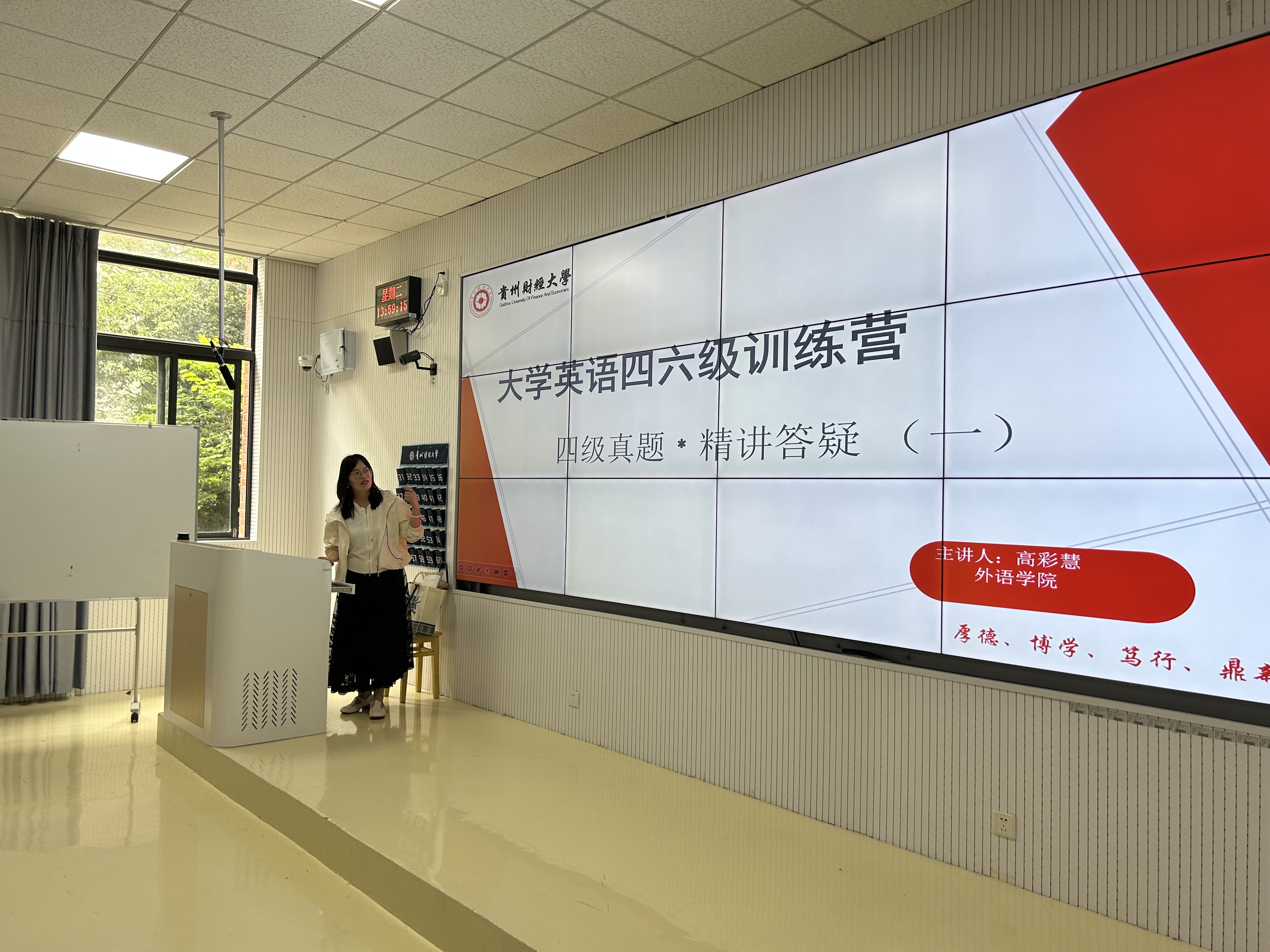 于4月14日举办了首期两场次四六级答疑与冲刺讲座,大学外语教学部高彩慧、杨莎二位老师主讲。