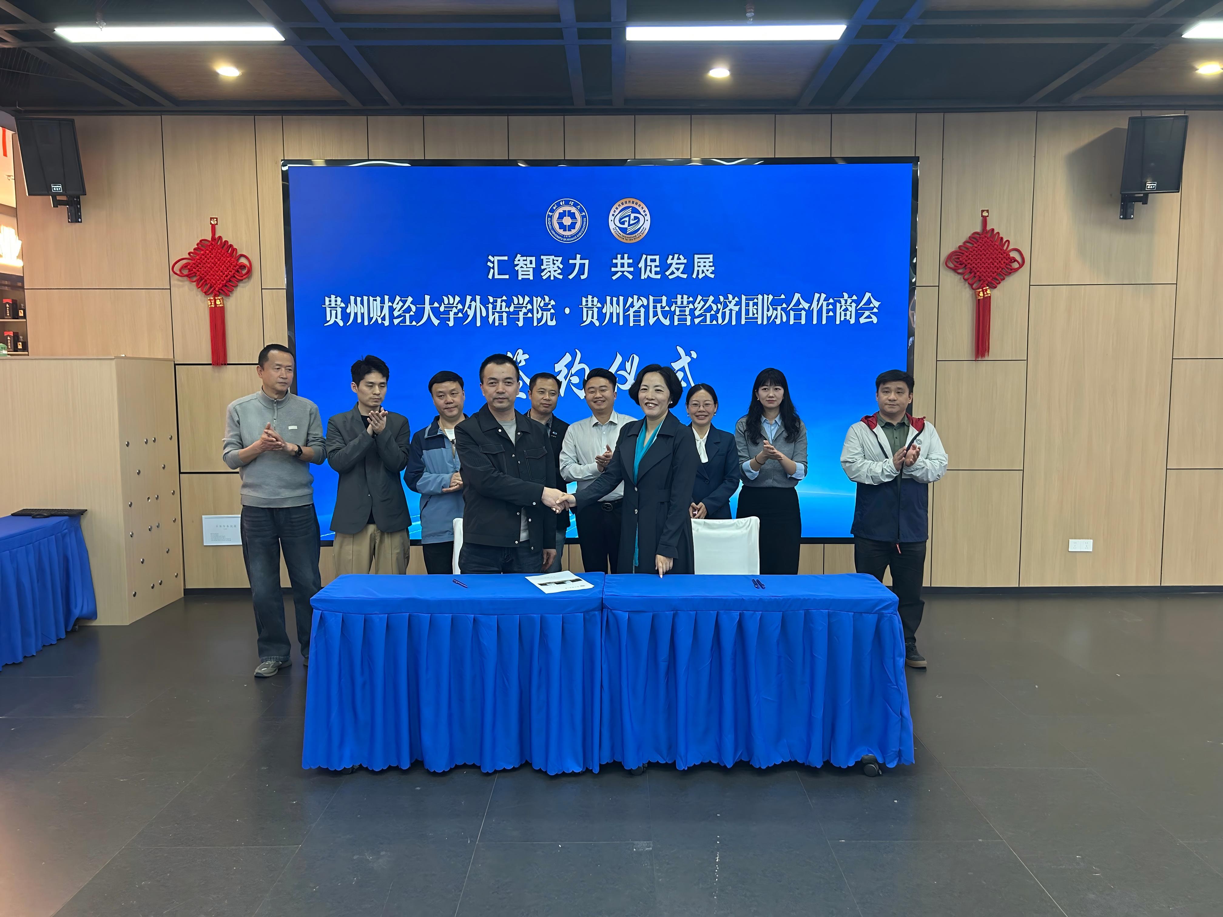 院长刘利音、副院长唐丽君一行赴贵州省民营经济国际合作商会开展校企合作座谈交流,并举行实习基地签约授牌仪式。