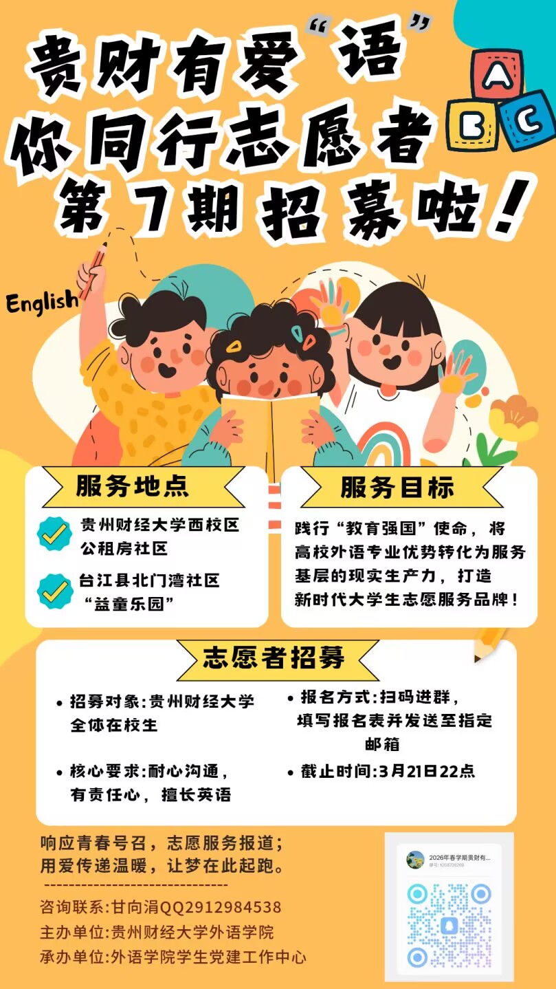 “贵财有爱 ‘语’你同行”语言教学志愿服务第7期志愿者开始招募啦!