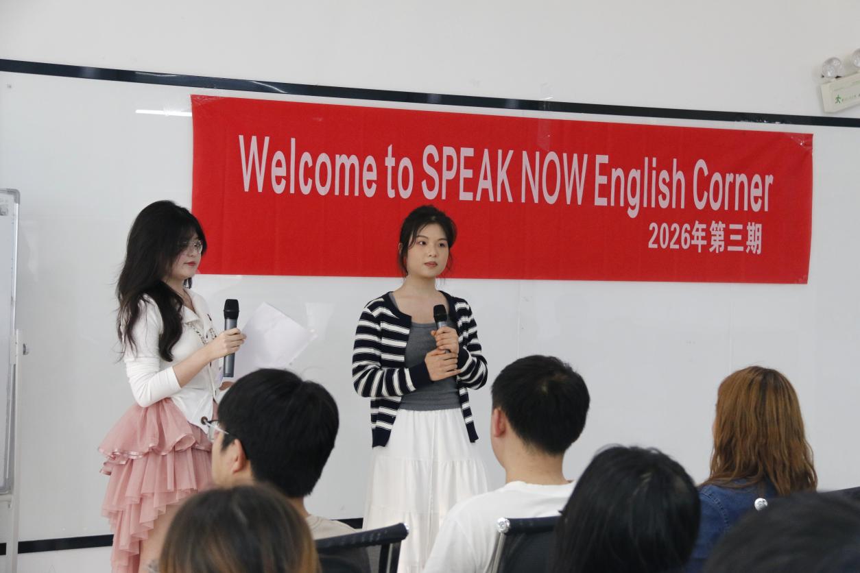团委承办的“Speak Now”英语角第三期在学生活动中心四楼开展。本期主题为“Speak Up,Grow Together”,旨在引导同学们在英语交流中讨论家庭教育,加深自我认识,外籍教师Caroline Navarrina应邀参加。