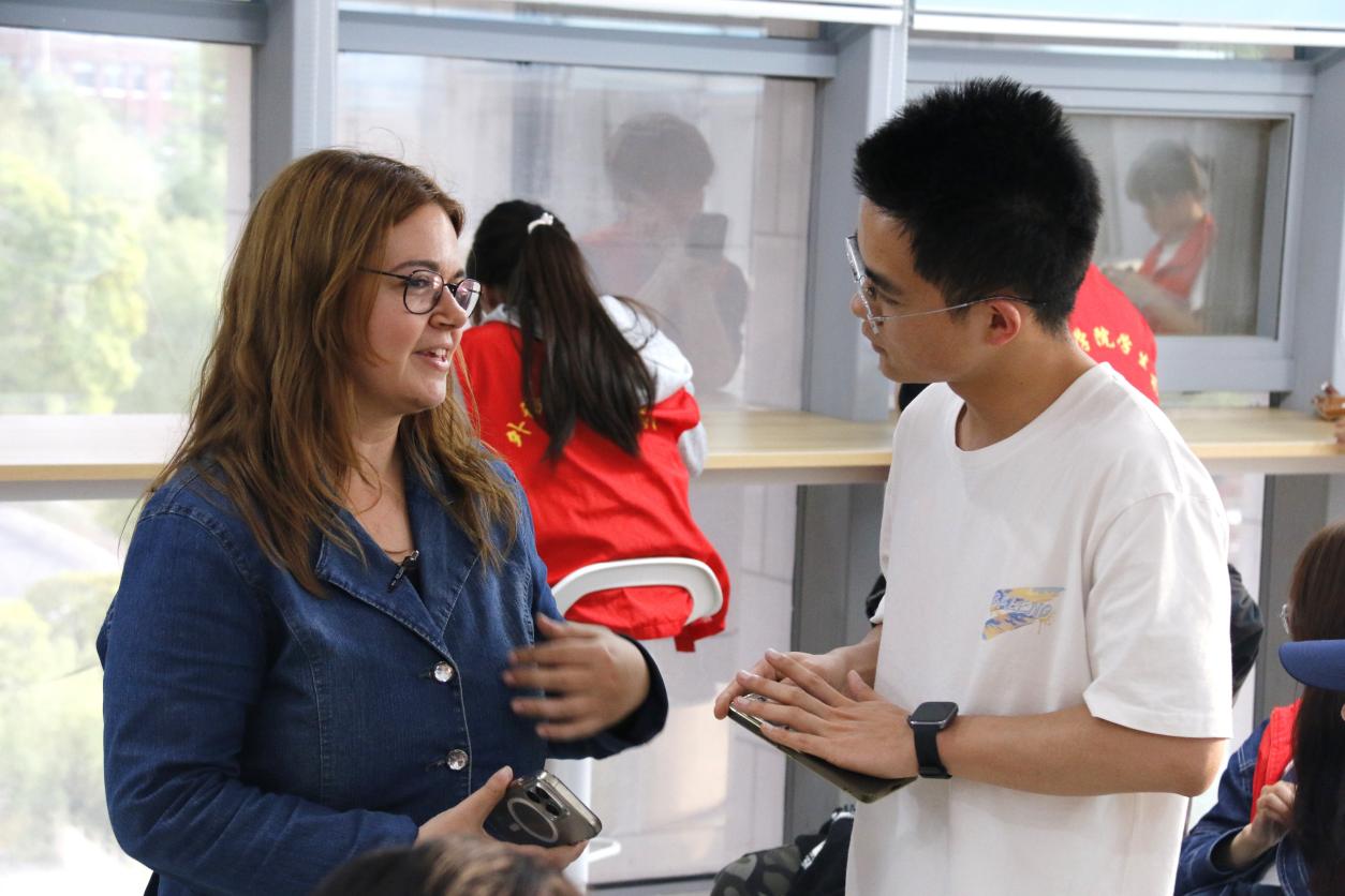 随后进入自由讨论环节。主持人提供了十个有关家庭教育的话题,同学们围坐在一起,有人分享与父母相处的点滴,有人畅想未来自己的教育理念。Caroline Navarrina老师也分享了不同文化背景下的家庭相处模式。在用英语讲述这些日常话题的过程中,大家重新审视了父母的教育方式,也拉近了彼此的距离。
